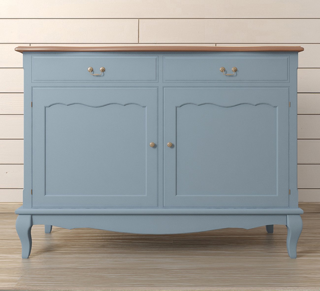 Цвет: Лавандовый,Глубина, см: 42,Высота, см: 91,Ширина, см: 123,Материал: Массив березы,Массив ясеня,Вес: 35 кг,Размер: Большие,Стиль: Прованс,Особенности: Столешница - ясень,Форма: Прямоугольные,Цвет столешницы: Орех,Дизайн: Франция,Вид: Высокие,Ориентация: Горизонтальная,Назначение: Для одежды,Количество ящиков: 2,Количество дверей: 2,Ножки: с гнутыми ножками,Опора: На ножках, Комод Leontina Lavanda с ящиками голубой I голубой