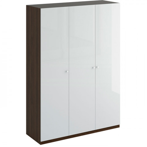 Шкаф Uno трехдверный дуб Шато, белый глянец с коричневым